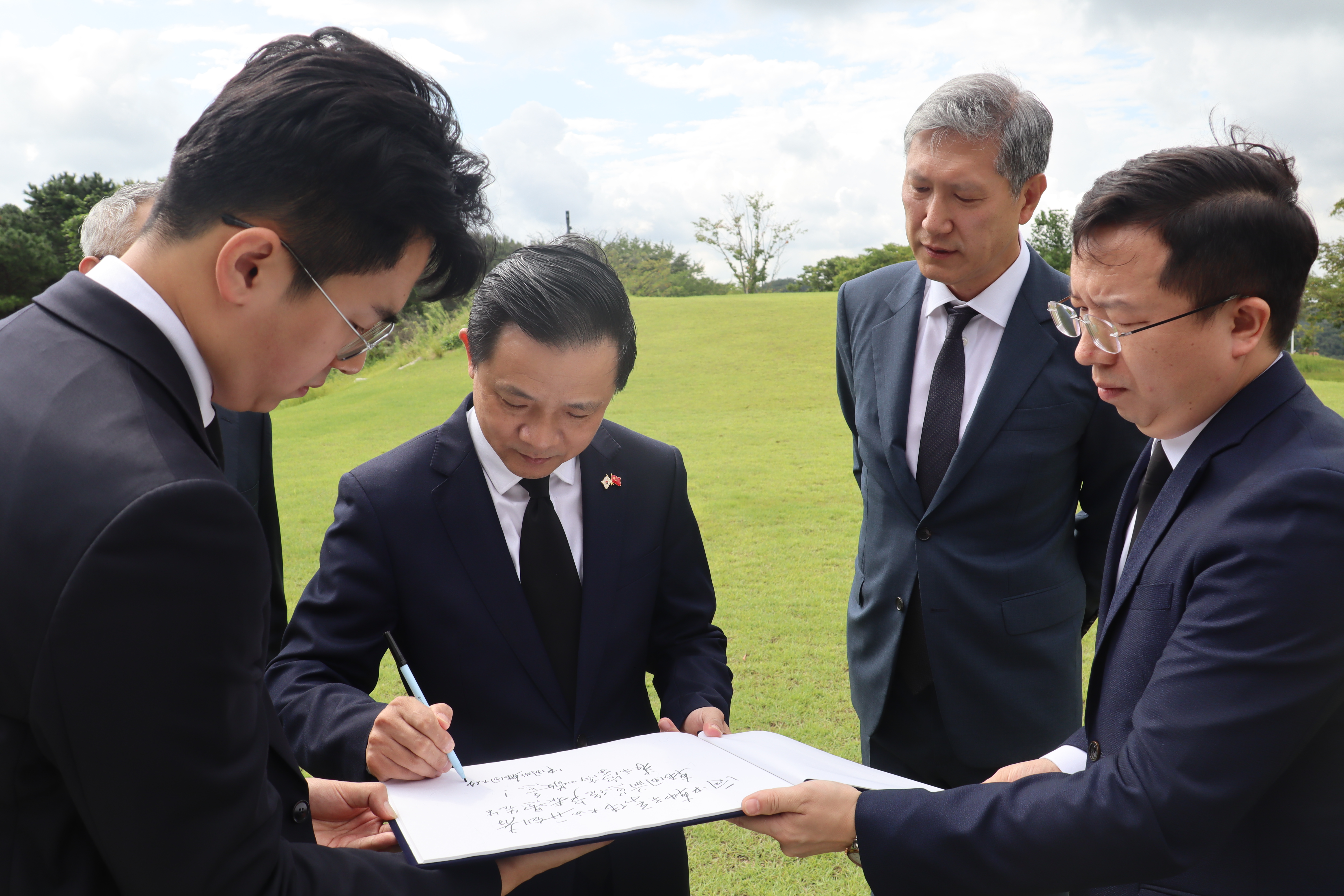 이 자리에는 노재헌 보통사람들의시대 노태우센터 상임이사가 묘역에 먼저 도착해 다이빙 대사 일행을 맞이하고 감사 인사를 전했다.