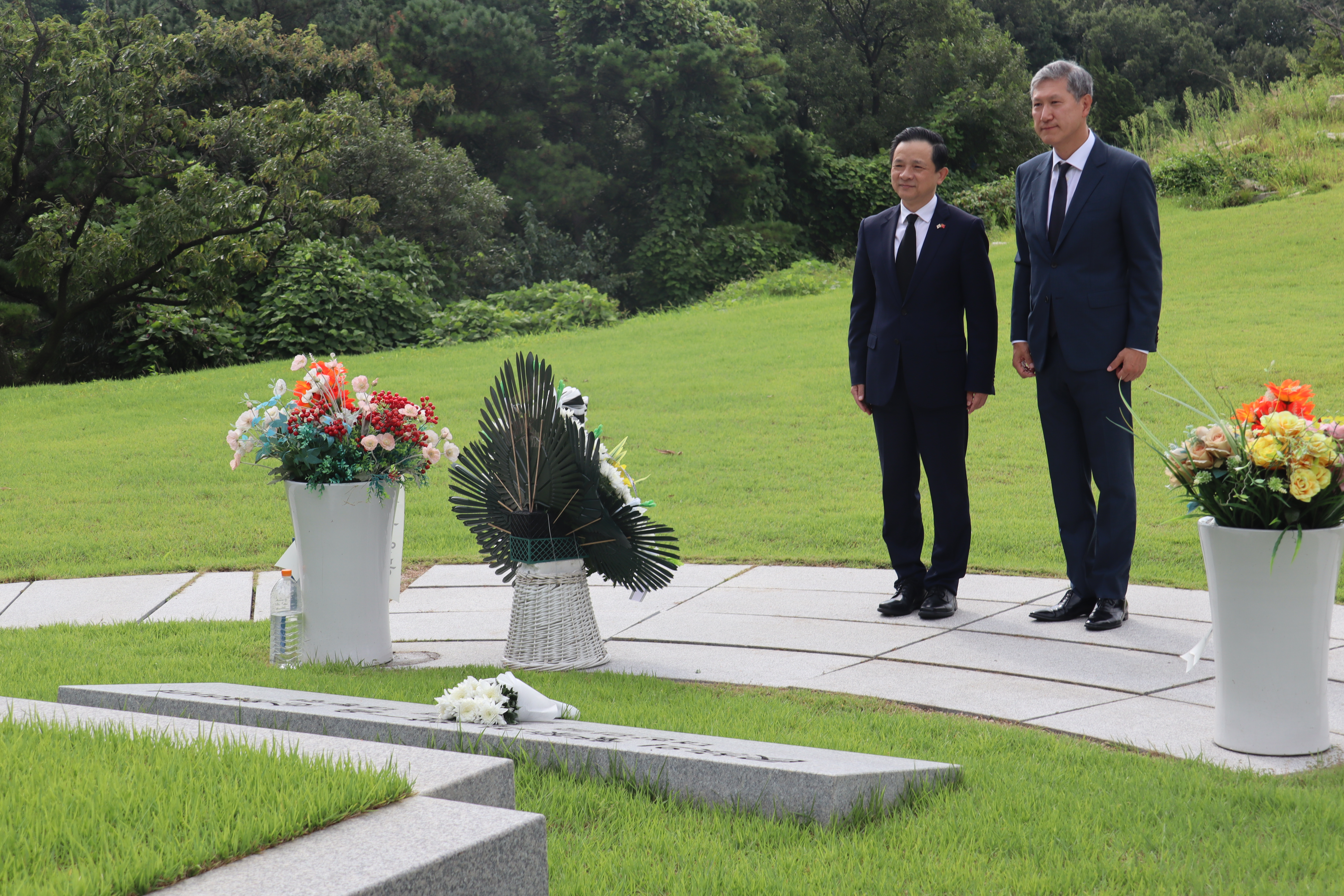 다이빙 대사는 참배를 마치고 노재헌 상임이사와 함께 묘역 주변을 둘러보았다.